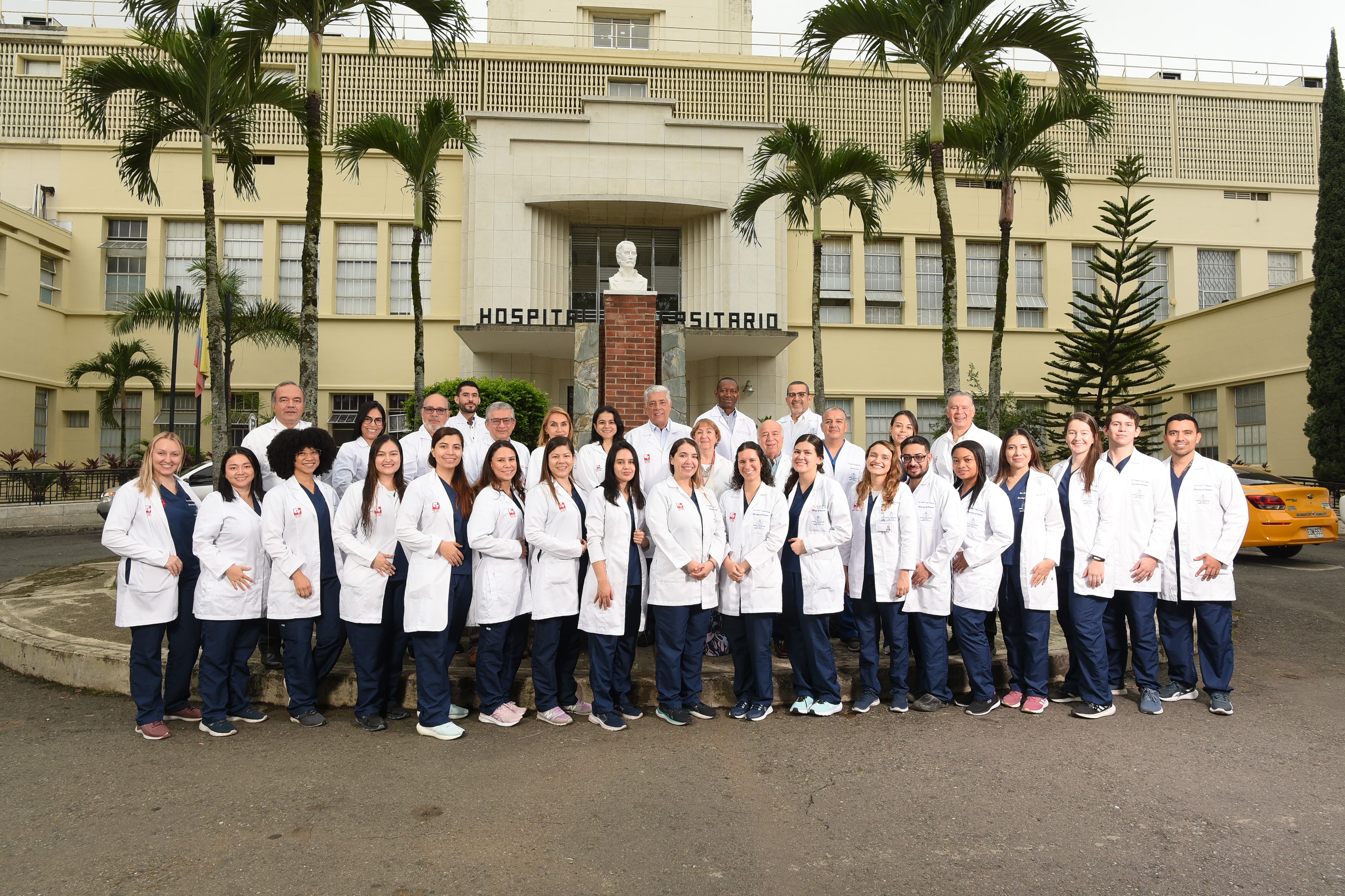 El grupo de médicos ginecólogos estaba formado por los doctores Arturo Vélez Gil, Luis Carlos Uribe, Hugo Campos Gaviria y Alonso Trujillo, entre otros, en el año de 1960 las dos ramas de la especialidad se fusionaron e iniciaron labores en el 6º piso del Hospital Departamental del Valle, el cual había sido designado para tal fin. Los dos grupos de profesionales, Obstetras y Ginecólogos unidos comenzaron a conformar las bases para el programa de postgrado en la especialización en Obstetricia y Ginecología, bajo la supervisión del primer Decano de la Facultad de Medicina, el Dr. Gabriel Velásquez Paláu, del Director de Educación Médica el Dr. Alejandro Jiménez Arango y del primer Jefe del Departamento de Obstetricia y Ginecología, el Dr. Jorge Escobar Soto y con ello se inició el Programa de Postgrado en Obstetricia y Ginecología. Se enunciaron los objetivos generales y específicos, así como los contenidos y estrategia curricular para cada uno de los niveles de estudios de posgrado (Residencia Médica).